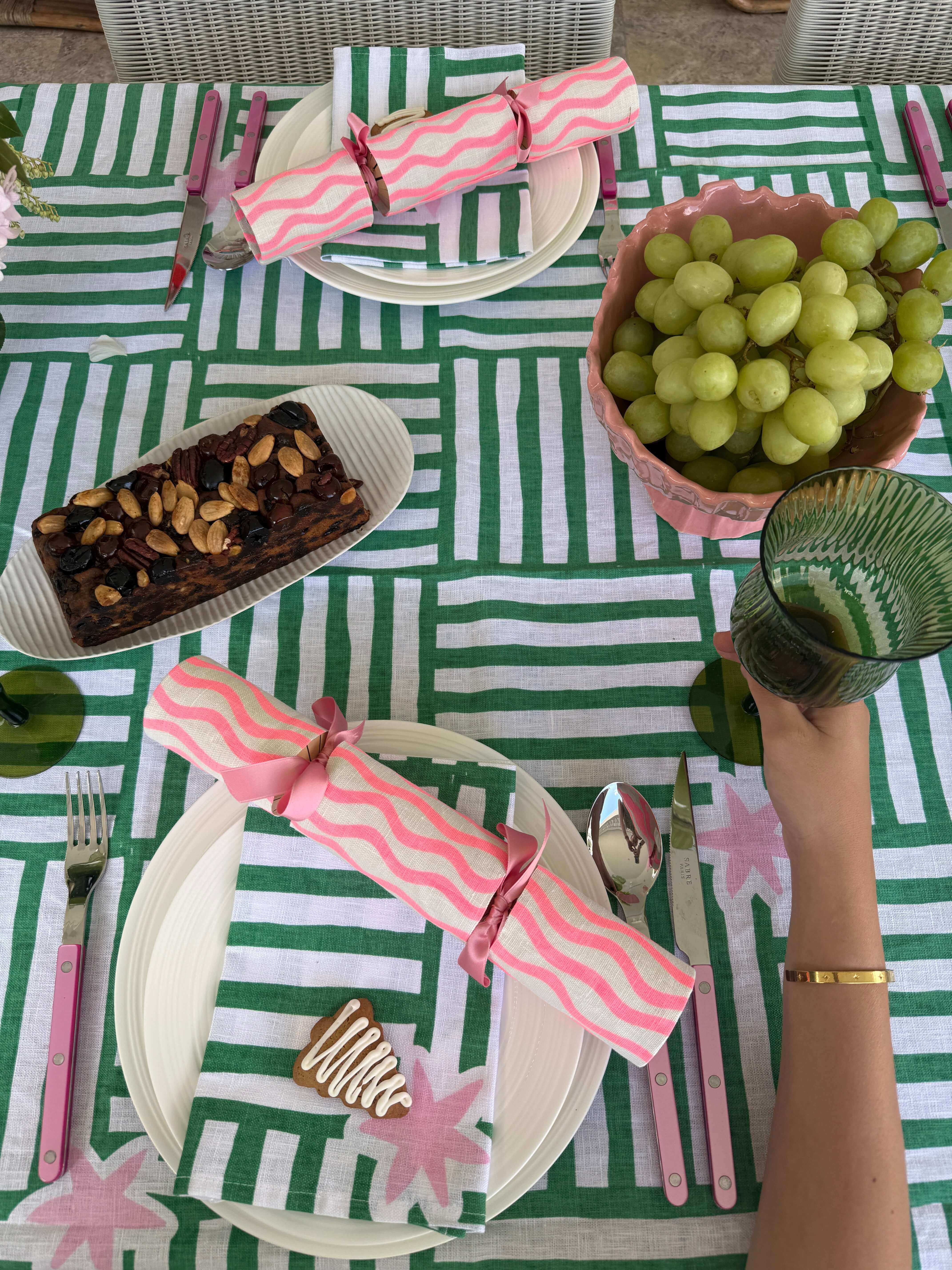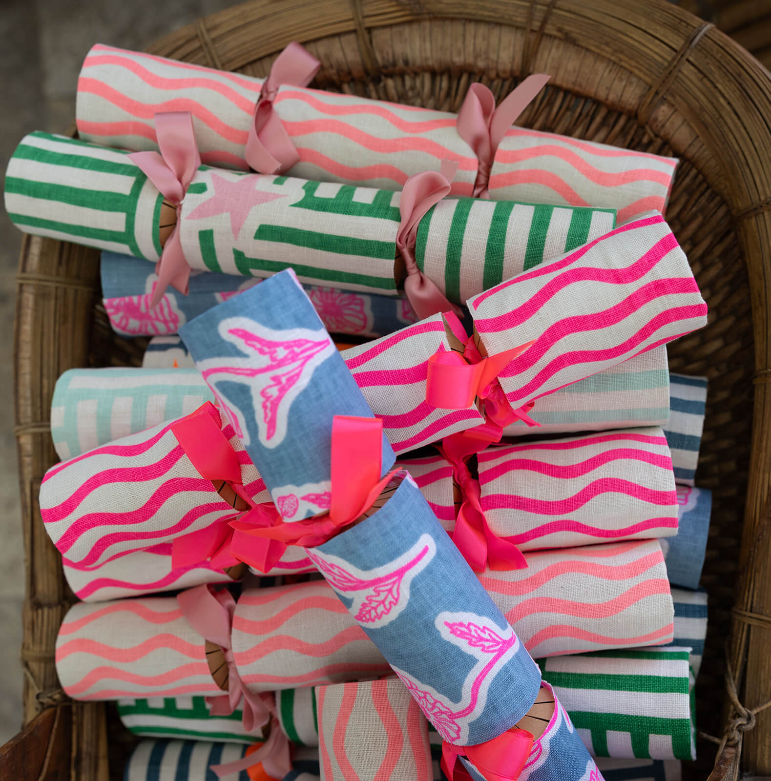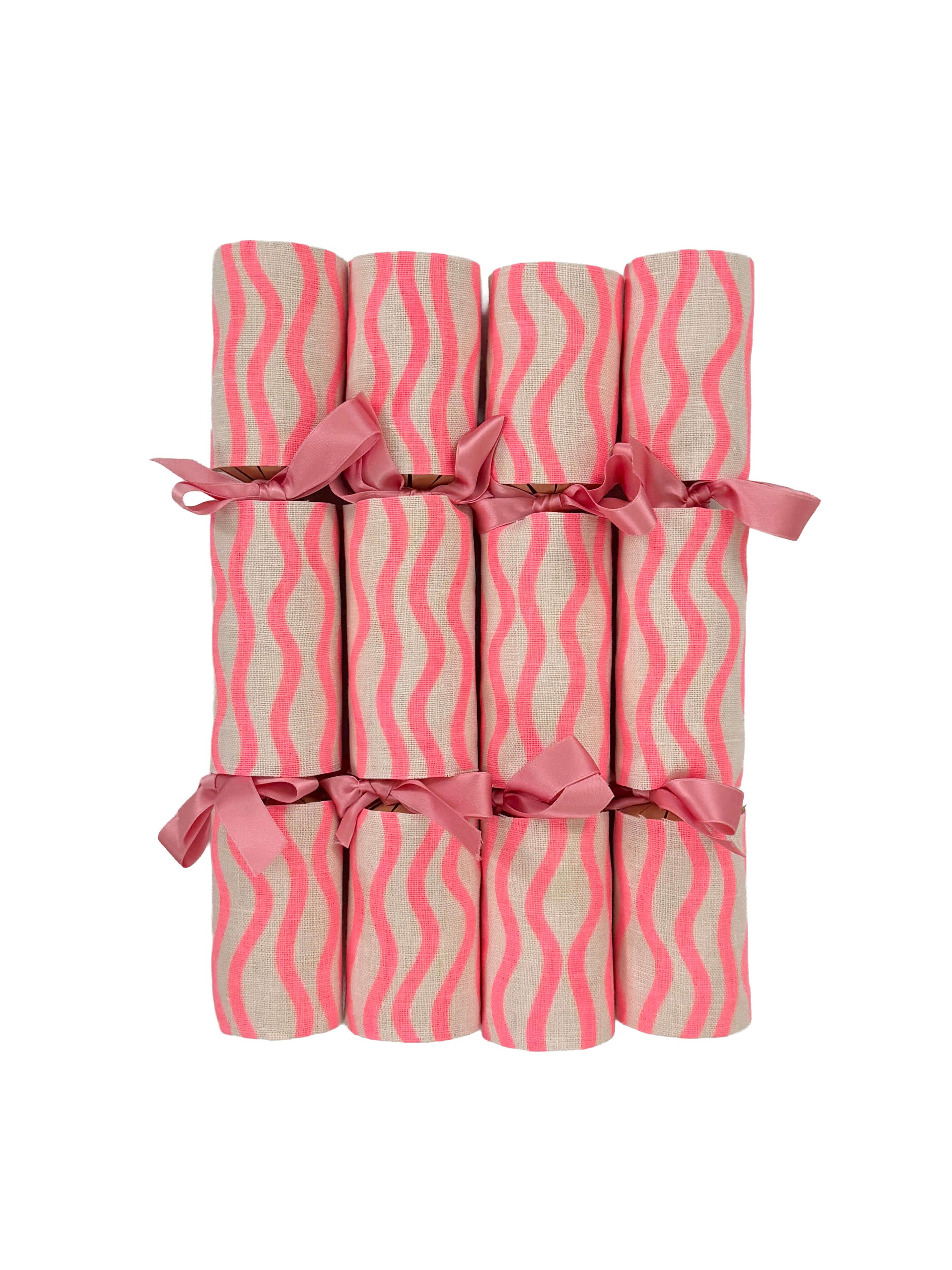 Wiggly stripe Christmas bonbons in vibrant flamingo (a delicious mix of neon pink + neon orange inks). Tasteful bonbons to compliment your beautiful Christmas table.