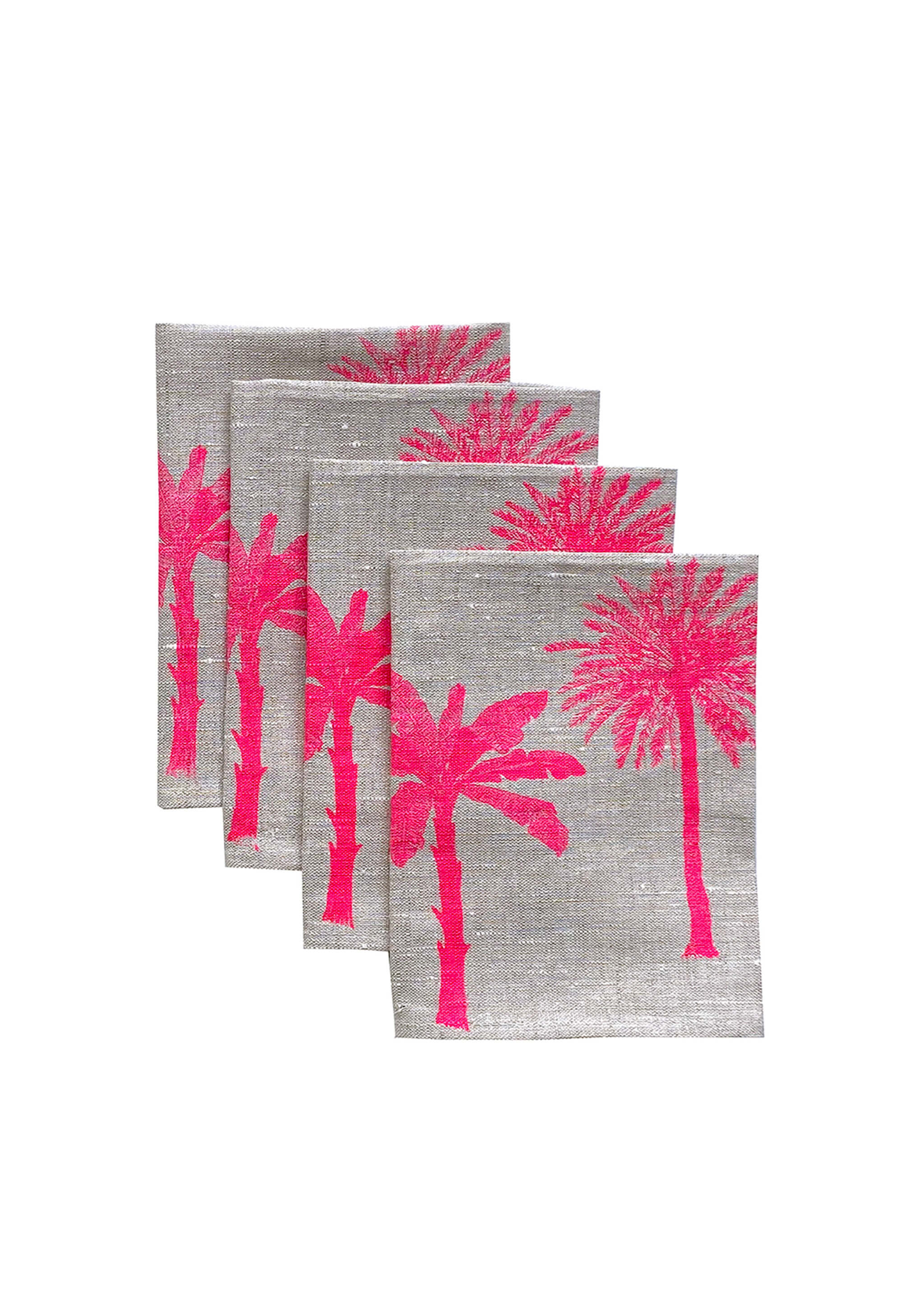 Neon pink Palms linen napkins (set of 4)