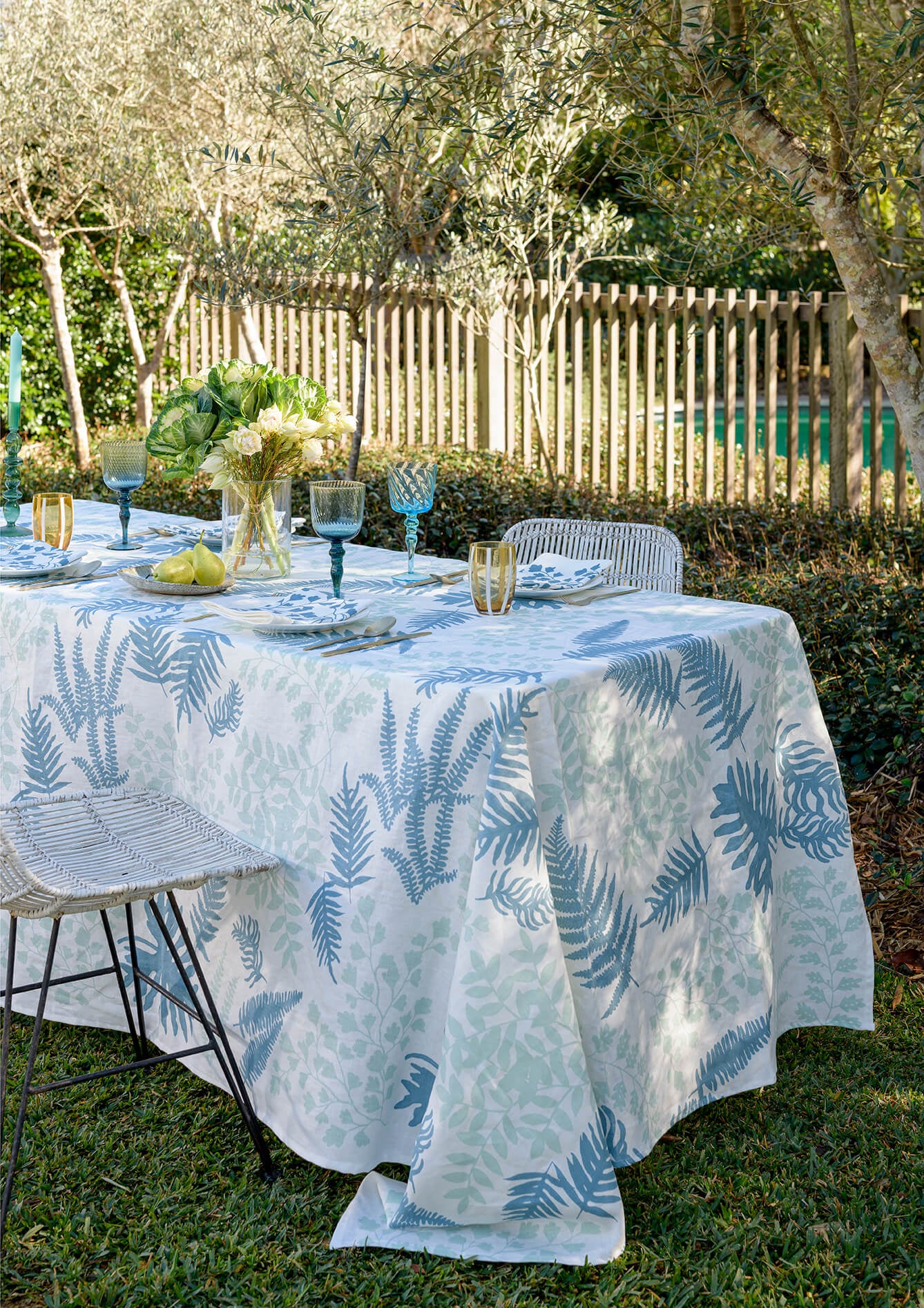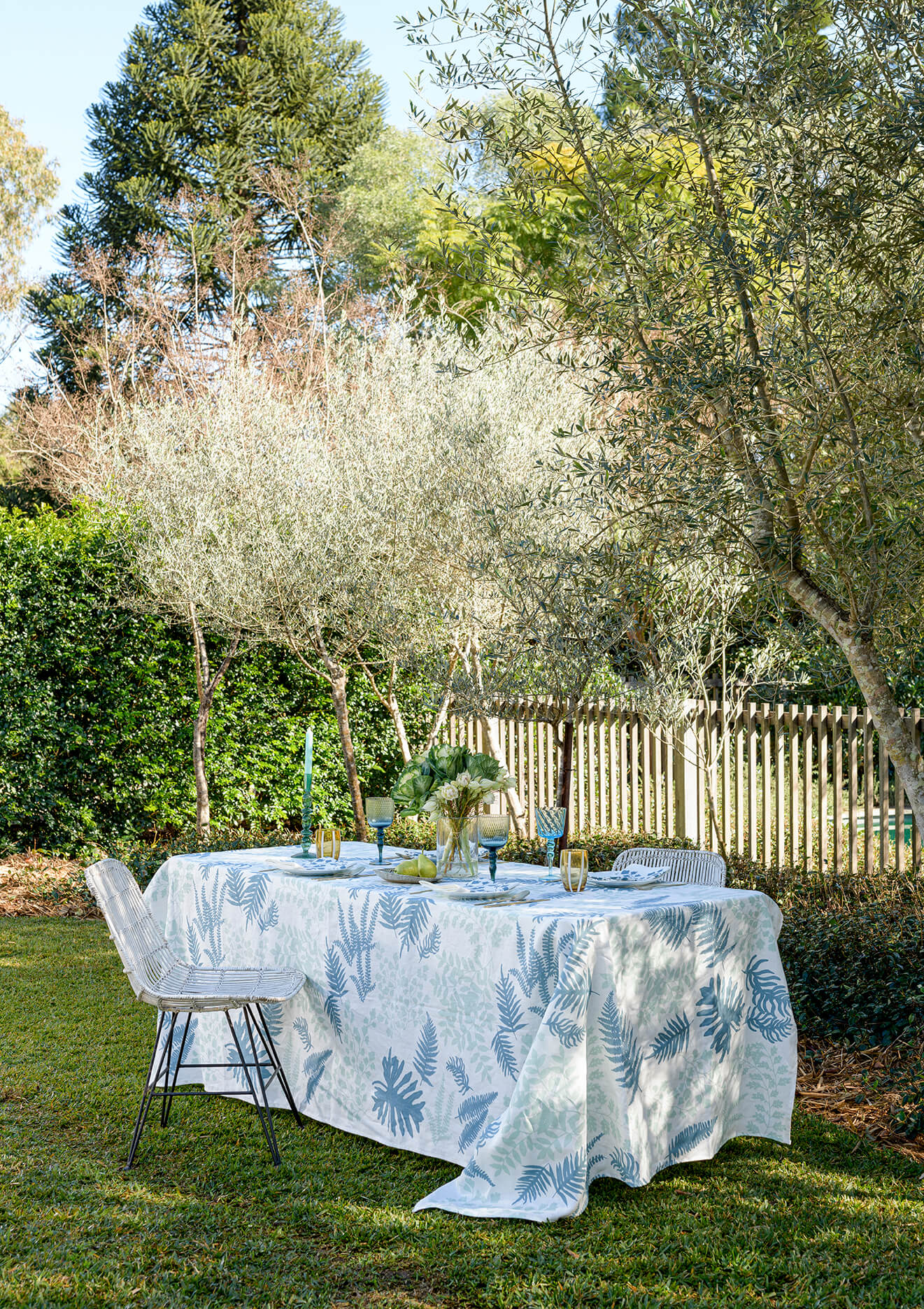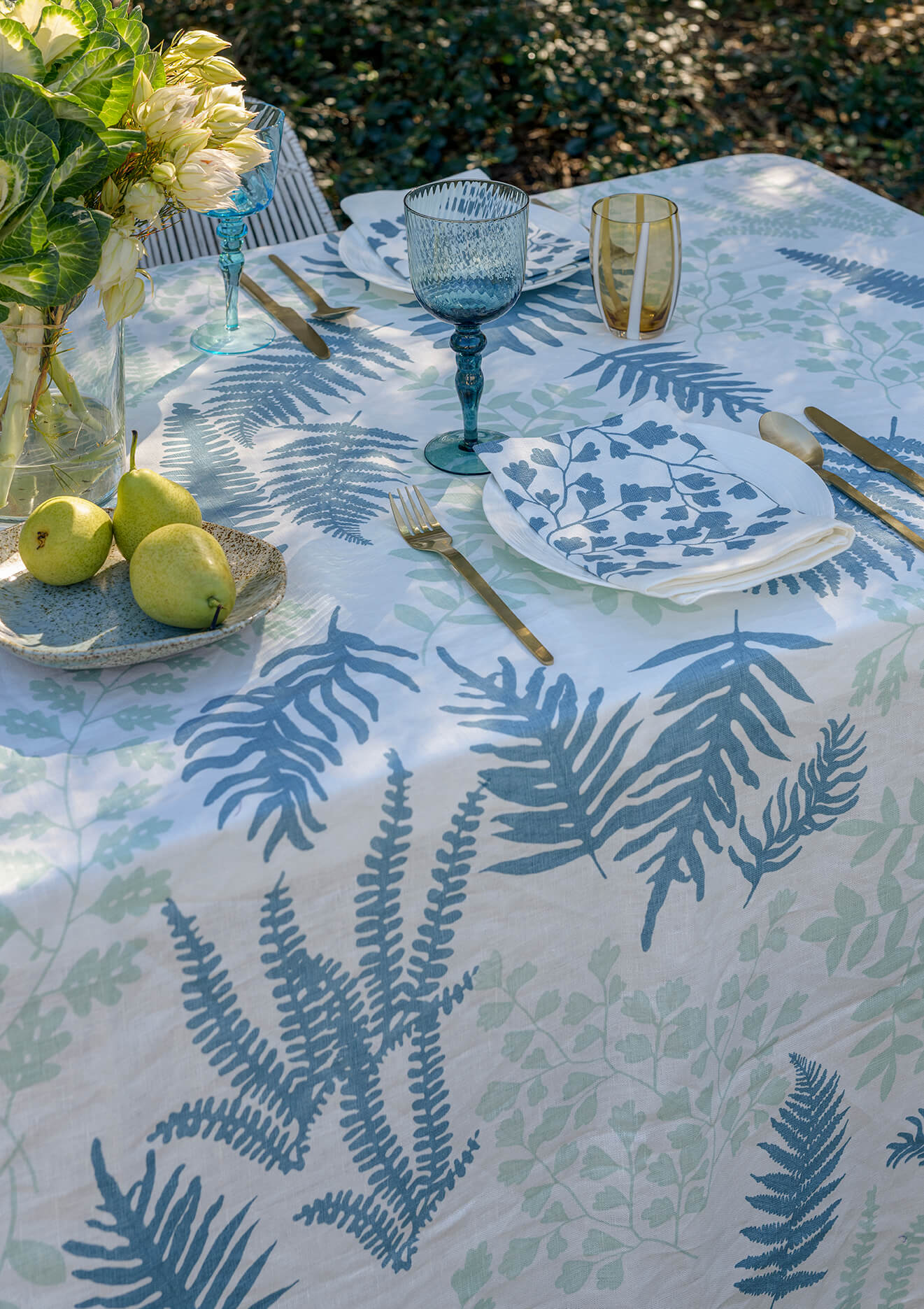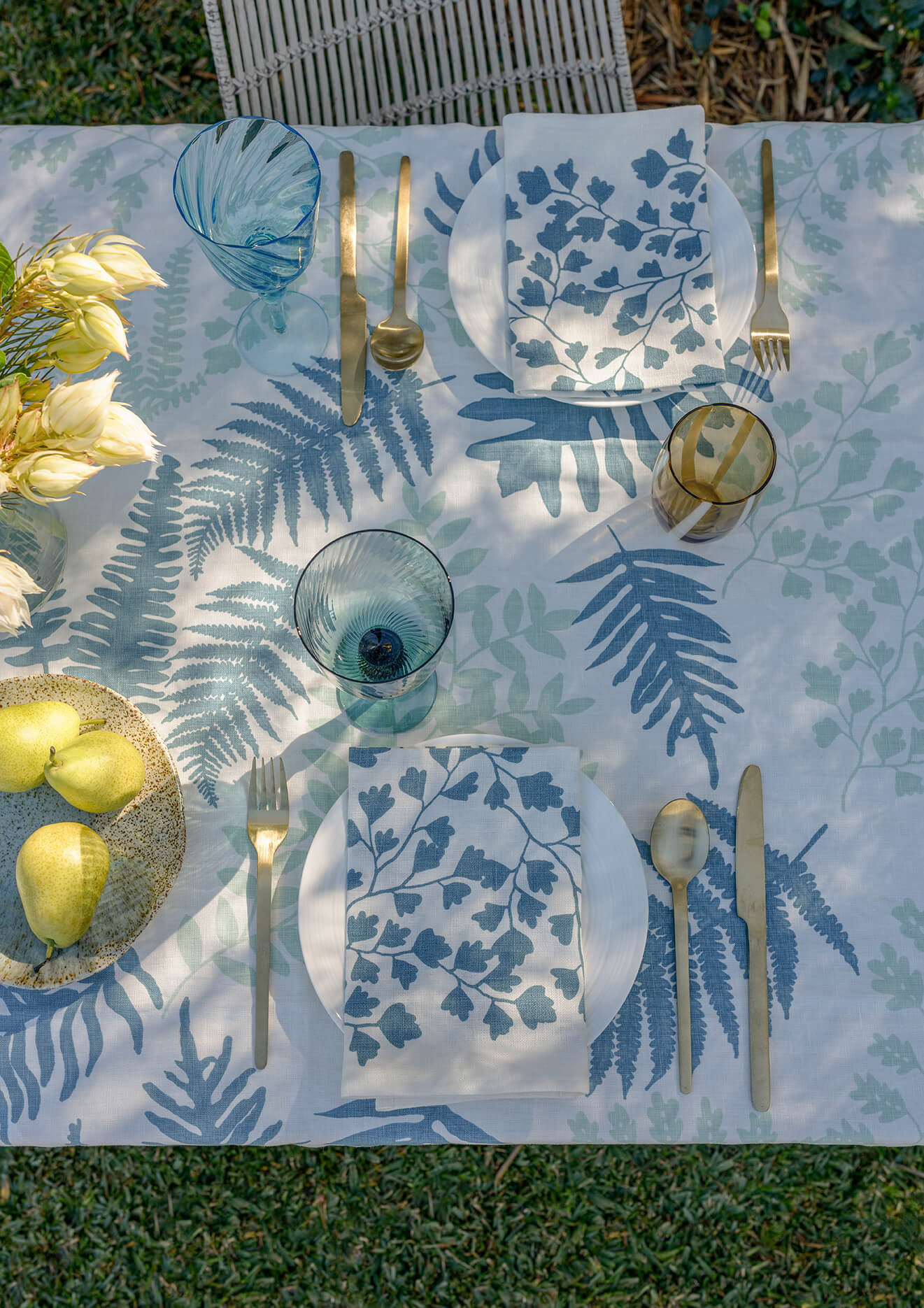 'Parsley' - One of the elements featured in our Botanical tablecloth - Parsley is printed in smokey blue onto off-white linen. Pairs back with our Botanical tablecloth and adds a fresh feel to any table setting.