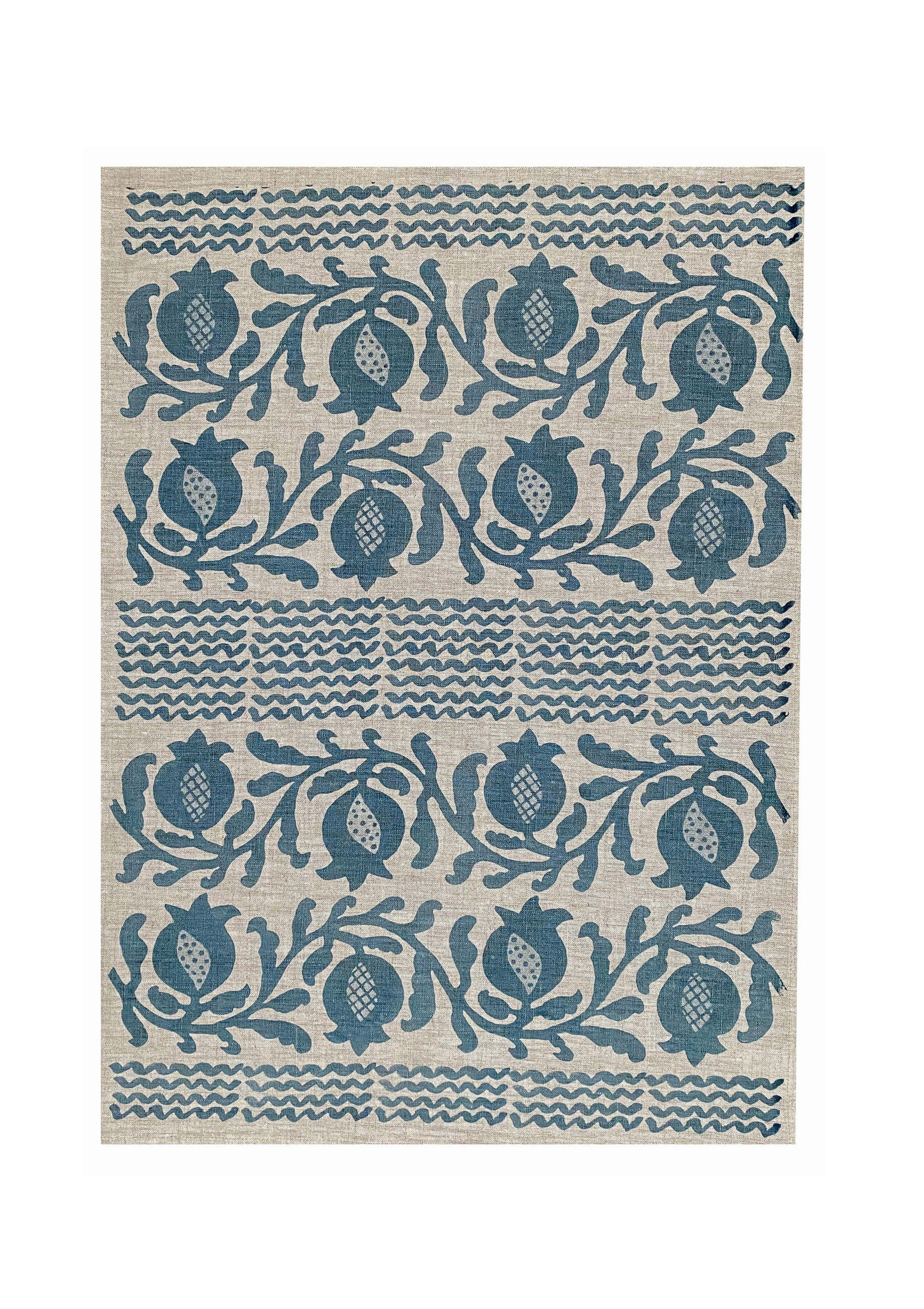 My Pomegranate painting is hand screen printed in smokey blue ink onto off-white or natural linen