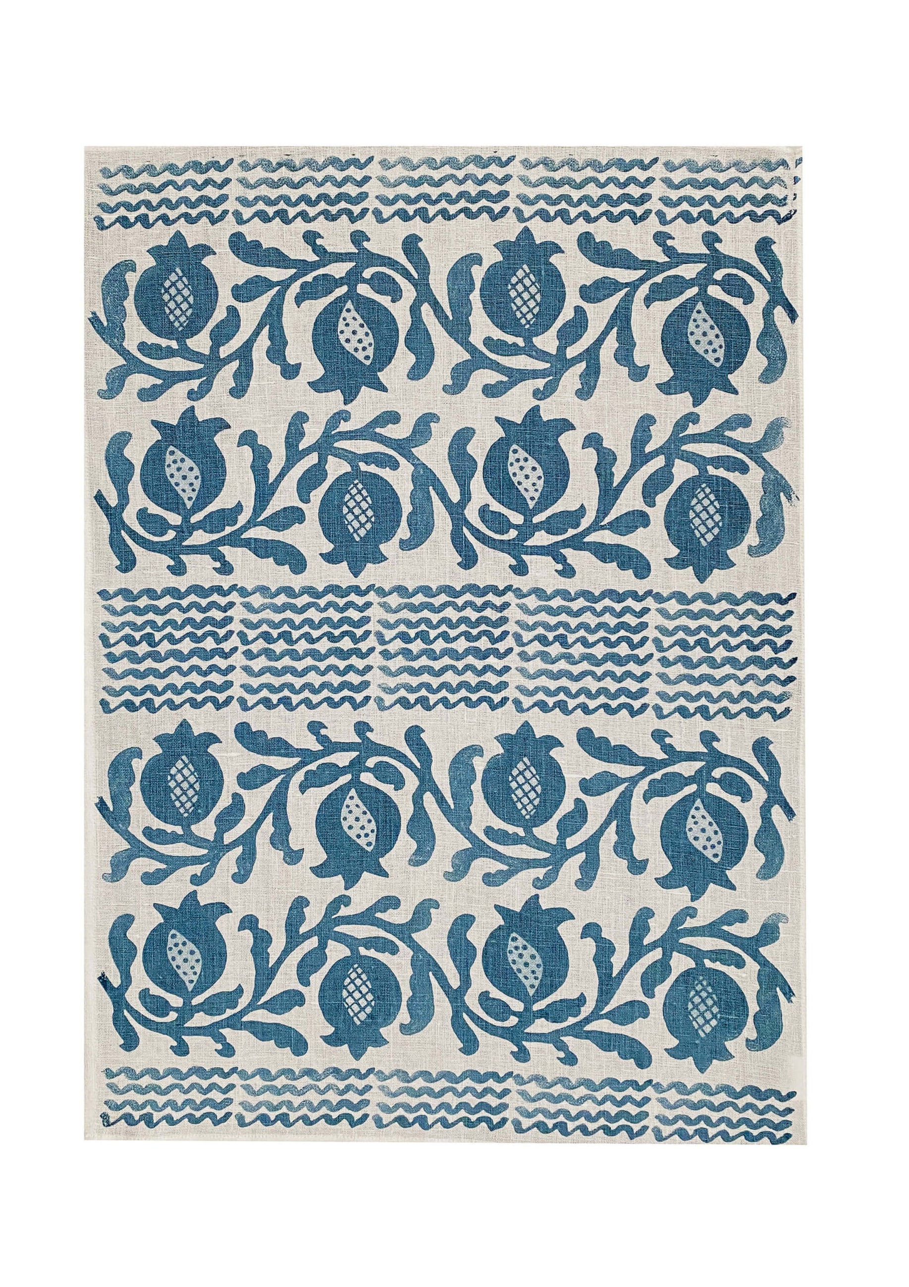 Blue Pomegranate linen tea towel (Natural and off-white)
