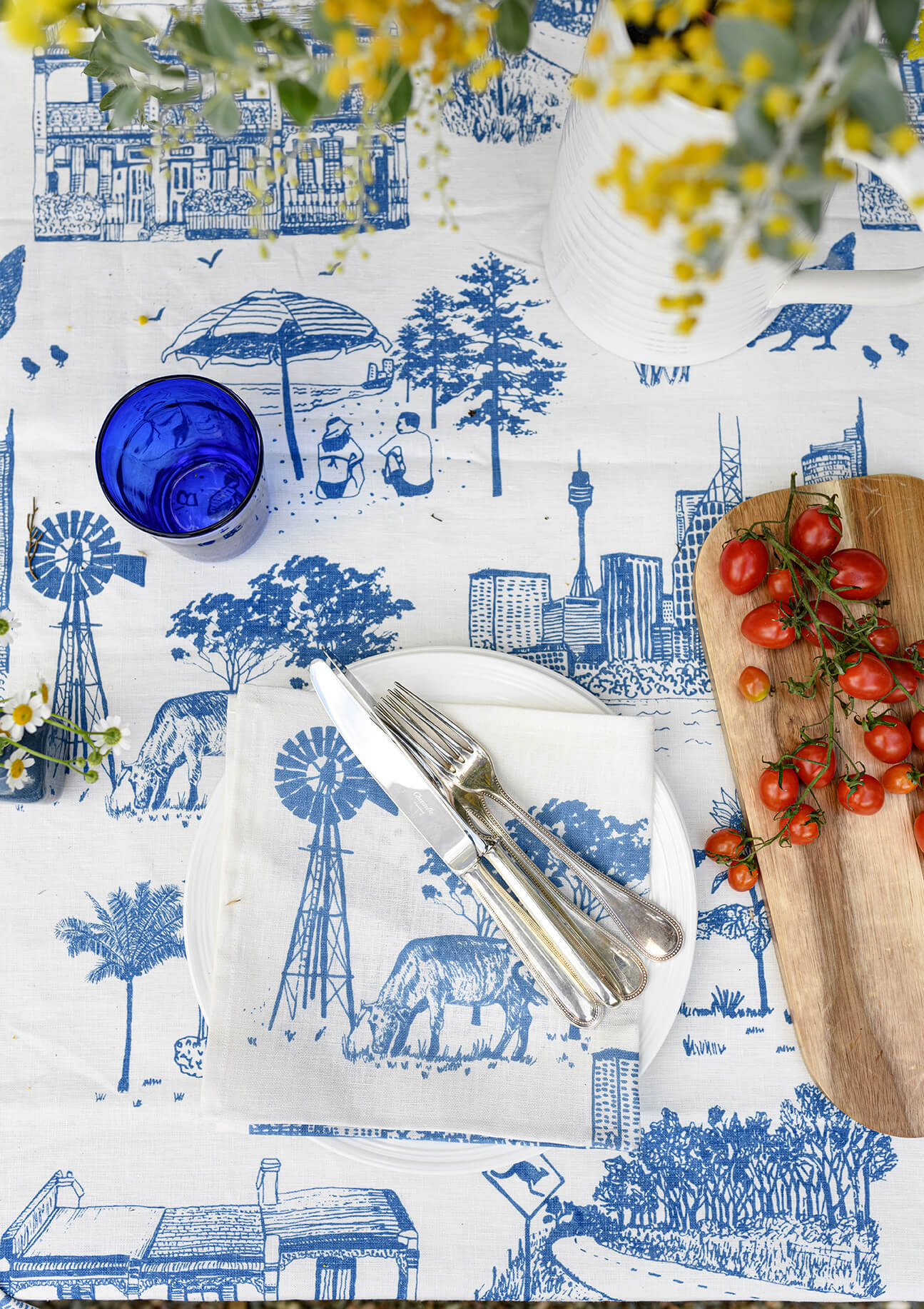 'Bush and the Big smoke' - Toile like scenes telling my story growing up between the bush and the big smoke, and enjoying the best of both worlds. Wheat, windmills and long road trips mixed in with city office towers, terrace houses and the beach. I feel this is a story shared by many Australians.